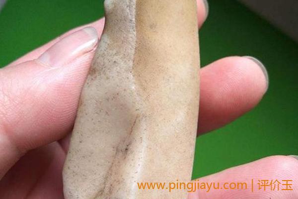 4.切断面。切开泥玉可以看到其内部构造,如有细密的小孔、条纹等则为。